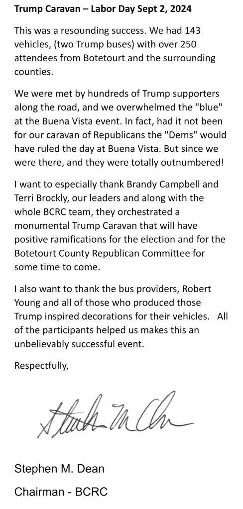 We, the members of the Botetourt County Republican Committee, convey our concern with the change in real estate values which has resulted from the most recent assessments which will dramatically raise real estate taxes for the citizens of this county. Our citizens are struggling with rising costs every day from the grocery store to gas prices and many families are unable to keep up. Sometimes there arises a disconnect between citizens of the County who are trying to make ends meet and the concerns and focus of the Board toward costs, improvements, and projects needed in the County. We feel that disconnect is creating serious concerns with the real needs of the people.